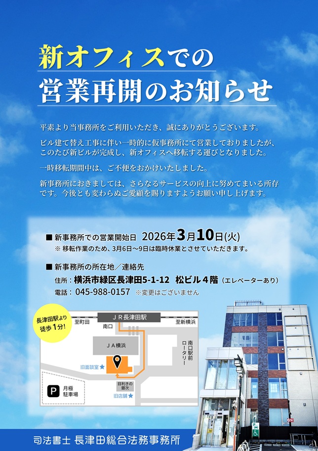 長津田総合法務事務所は横浜市緑区・青葉区・旭区、東京都町田市エリアの司法書士事務所です。