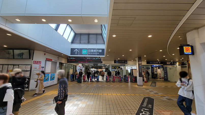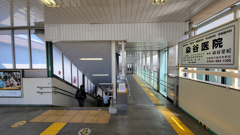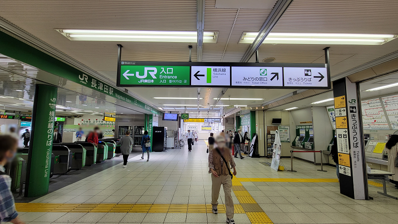 左側にJR長津田駅の改札があります。JR長津田駅よりお越しになるときは、改札を出て左です。