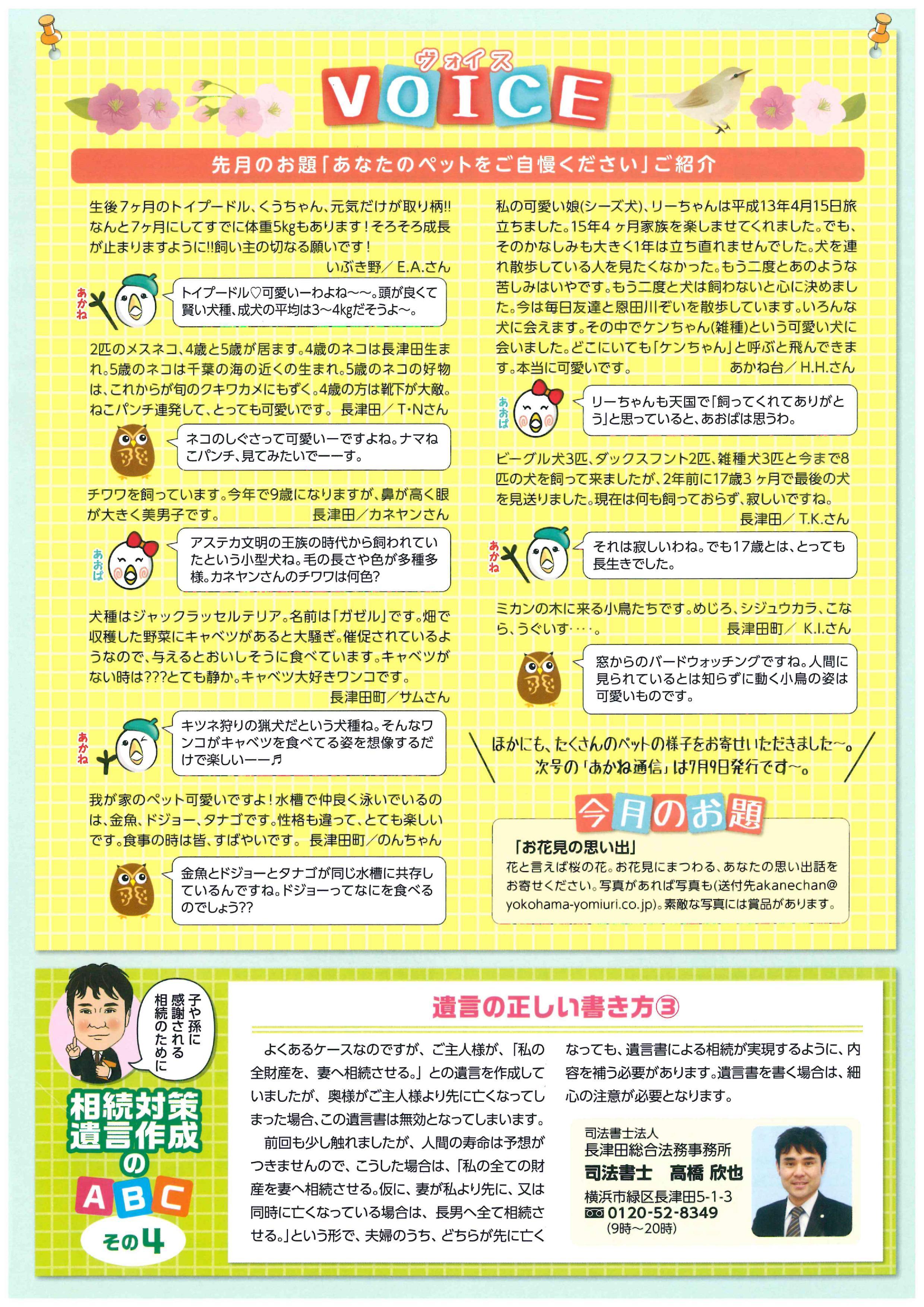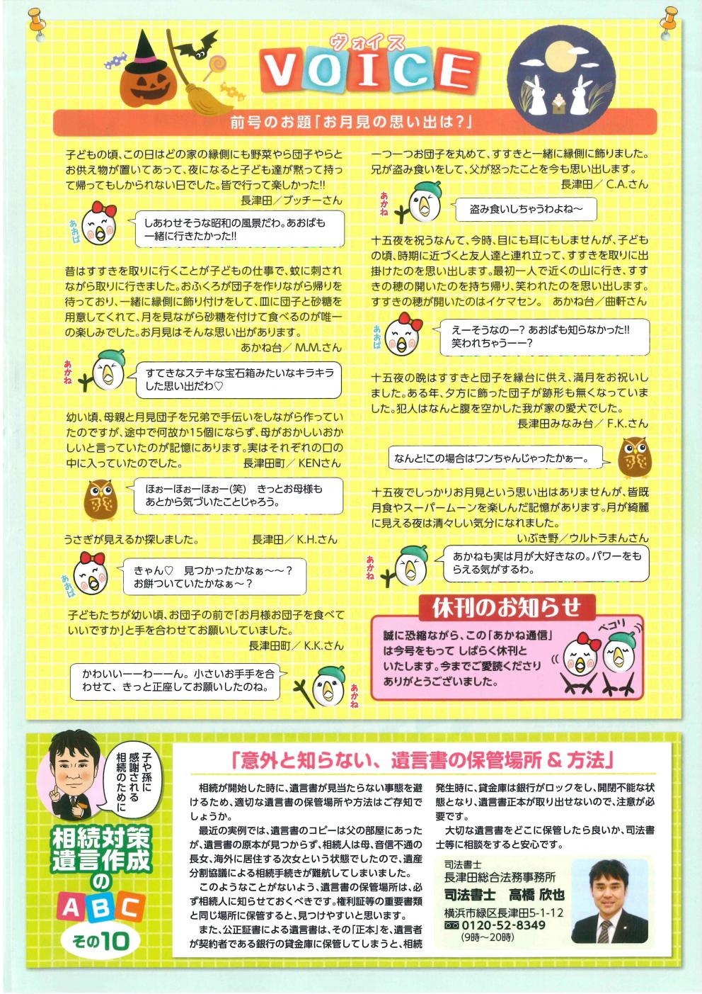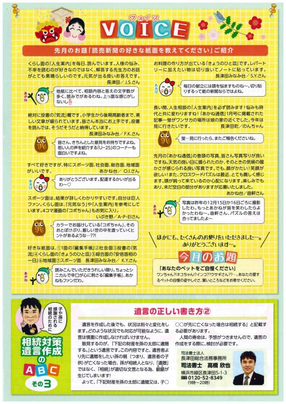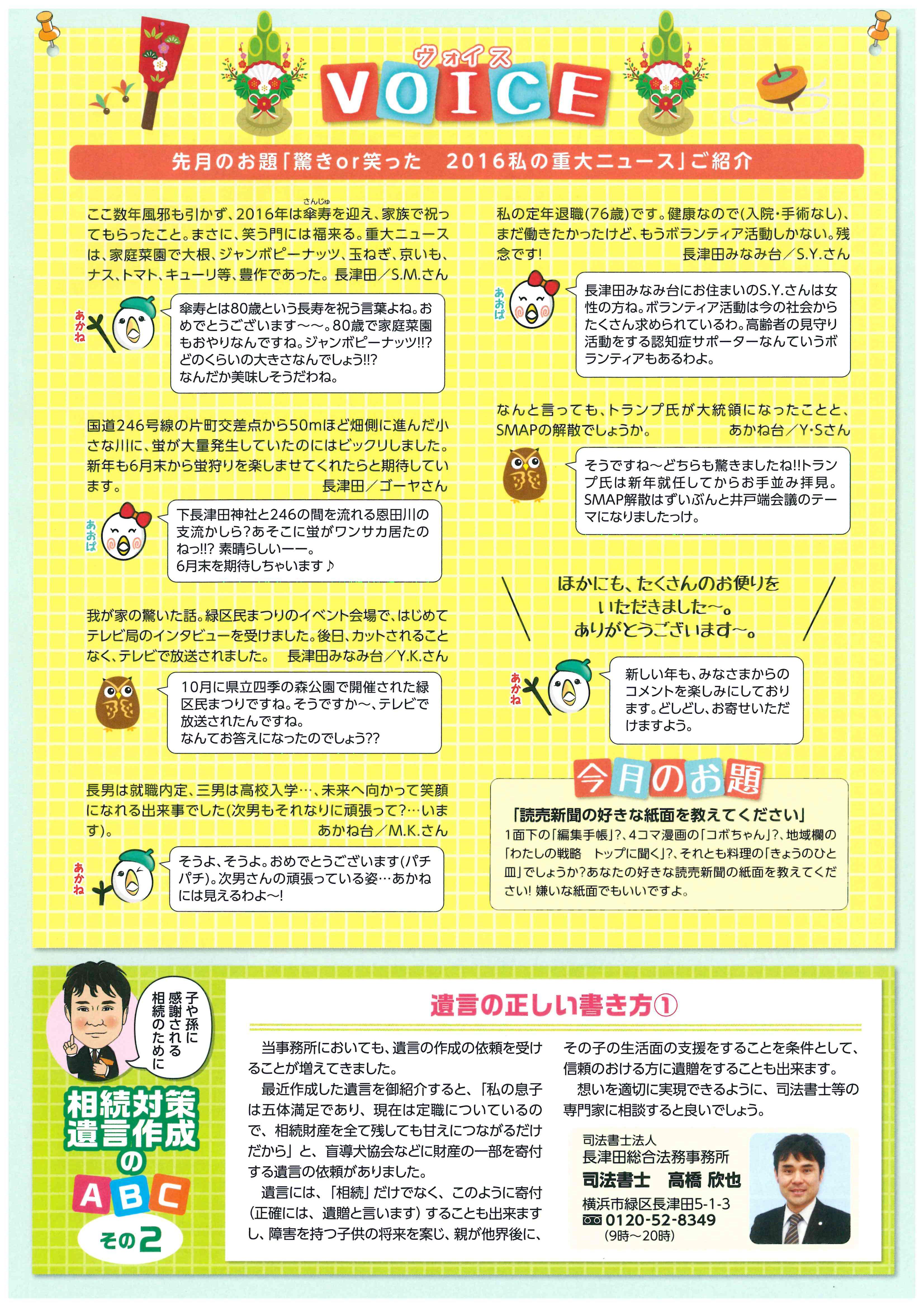 1月・4月・7月・10月 発行! (相続や遺言についての為になるコラム記事!) ▼2018年10月号(掲載その10)▼ ▼2018年7月号(掲載その9)▼ ▼2018年4月号(掲載その8)▼ ▼2018年1月号(掲載その7)▼ ▼2017年10月号(掲載その6)▼ ▼2017年7月号(掲載その5)▼ ▼2017年7月号(掲載その4)▼ ▼2017年2月号(掲載その3)▼ ▼2017年1月号(掲載その2)▼ ▼2016年12月号(掲載その1)▼