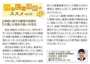 | 相続に関する義理の両親を介護した場合の扱いが改正 |