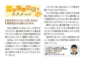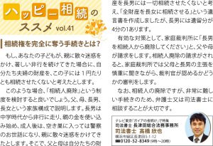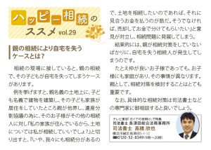 高齢化社会になるにつれ、相続に関するご相談が急増しています。日々、相続相談をお受けしていると、幸せな相続であるか否かは「生前の御両親の考え方」に大きく左右されると痛感します。「我が家は、子ども達全員仲が良いから大丈夫」と安心しきっているご両親は危険信号です。