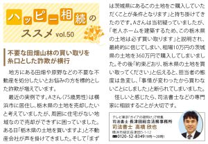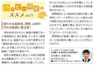 | 狙われる高齢者。原野、山林の巧みな勧誘に要注意! |