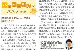 | 地方に不要な空き家、山林、田畑を所有していて手放したいが、引き取り手がいなく、困っているとの相談が増えています。実際の声として、草刈りや建物の補修費用などの維持費が負担だとか、遠方にあるので管理できない、子どもたちには相続させたくないなどの声が聞かれます。 解決策としては、有償ならば売買、無償ならば贈与をする方法がありますが、現状では引き取り手を探すことが非常に困難です。残る解決策は「放棄型」です。手順としては、まず現在の名義人につき、不要な土地建物以外は相続財産とならないよう対策をします。次に、その名義人が亡くなった際、相続人全員が相続放棄をし、相続人がいない状態となった後、家庭裁判所に「相続財産管理人選任の申立て」をして完了となります。この「放棄型」は労力や費用が掛かることが難点ですが、不要な空き家、山林、田畑をどうしても手放したい方には有効な解決方法です。お悩みの方は、弁護士、司法書士に相談をするとよいでしょう。 |