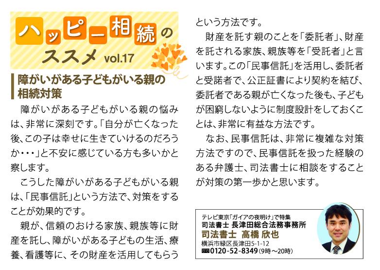 遺言には、「相続」という形だけでなく、このように寄付(正確には、「遺贈(いぞう)」と言います。)することが可能です。また、障害を抱える子供の将来を案じ、親が他界後に、その子の生活面の支援をすることを条件として、信頼のおける方に、財産を遺贈をすることも出来ます。 こうした場合には、想いを適切に実現できるように、司法書士や弁護士等の法律の専門家に相談すると良いでしょう。 |