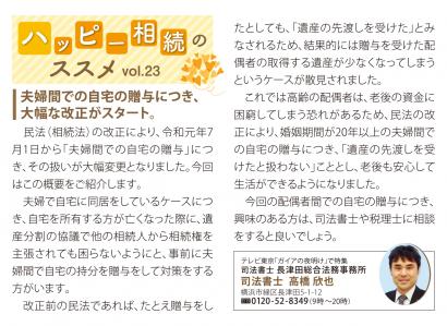 民法(相続法)の改正により、令和元年7月1日から「夫婦間での自宅の贈与」につき、その扱いが大幅変更となりました。今回はこの概要ご紹介します。